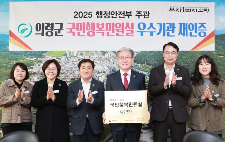 한편, 의령군은 올해 민원서비스 이용 경험이 있는 군민 506명을 대상으로 실시한 ‘2025년 민원서비스 만족도 조사’에서도 민원처리 소요시간, 공정성, 공무원 태도·친절도 등 대부분 항목에서 높은 점수를 받아, 지난해에 이어 역대 최고점인 93.7점을 기록했다.