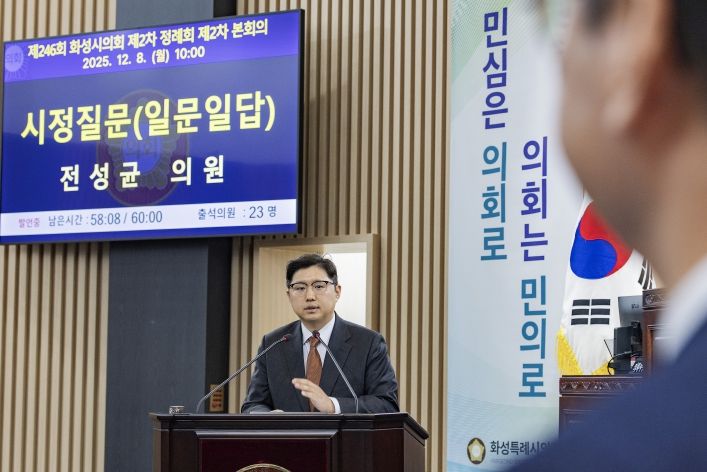 한방통신사 신유철기자 기자 | 화성특례시의회 전성균 의원(개혁신당, 동탄4·5·6동)은 오늘 제264회 제2차 정례회 제2차 본회의 시정질문을 통해 화성시의 재정 악화, 공공기관 관리 부실, 조직 운영 혼선 등 시정 전반의 구조적 문제를 지적하며 “지금은 재정의 기초 체력을 회복하기 위해 결단해야 할 시점”이라고 강조했다.