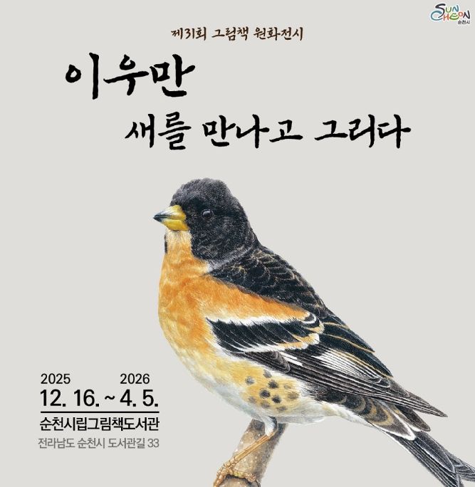 한방통신사 신다은기자 기자 | 순천시는 오는 16일부터 2026년 4월 5일까지 순천시립그림책도서관에서 제31회 그림책 원화전시 '이우만 새를 만나고 그리다' 를 개최한다.