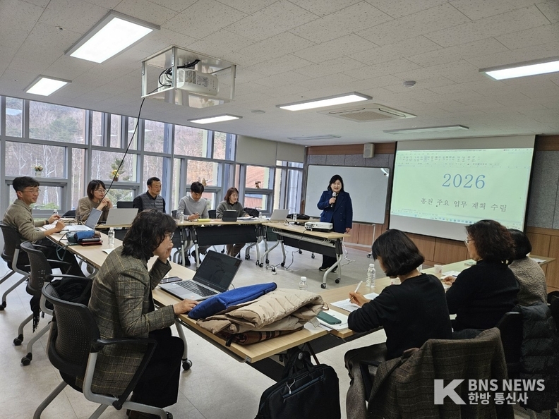 홍천교육지원청(교육장 문선옥)은 12월 11일(목)부터 12월 12일(금)까지 설악산 생태탐방원에서 ‘2026년 주요 업무계획 수립을 위한 전담팀(TF) 워크숍’을 운영하였다.