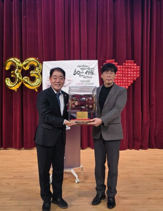 한방통신사 권영분기자 기자 | 충북 영동군은 지난 17일 국악체험촌 우리소리관 공연장에서 ‘2025년 하반기 난계국악단 퇴임식’을 개최하고, 33년간 난계국악단에서 활동해 온 대금 연주자 김종찬 단원의 퇴임을 기념하는 뜻깊은 시간을 가졌다고 밝혔다.