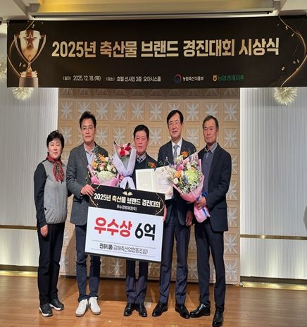 18일 농림축산식품부 주관 2025년 축산물 브랜드 경진대회에서 김해축협의 한우 브랜드 ‘천하1품’은 장관상(우수상)을, 부경양돈농협 한돈 브랜드 ‘포크밸리’는 장관인증서(명품 브랜드 인증)를 각각 수상했다.