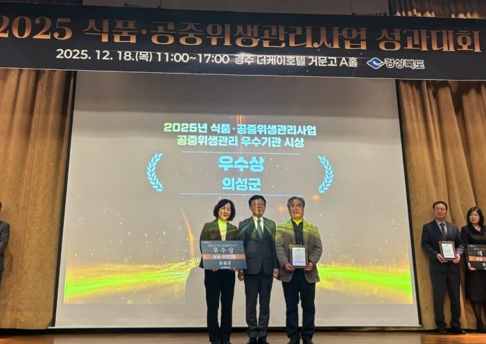 한방통신사 신유철기자 기자 | 의성군은 지난 18일 경상북도가 주관한 ‘2025년 식품·공중위생 분야 평가’에서 두 개 부문에서 동시에 우수상을 수상했다.