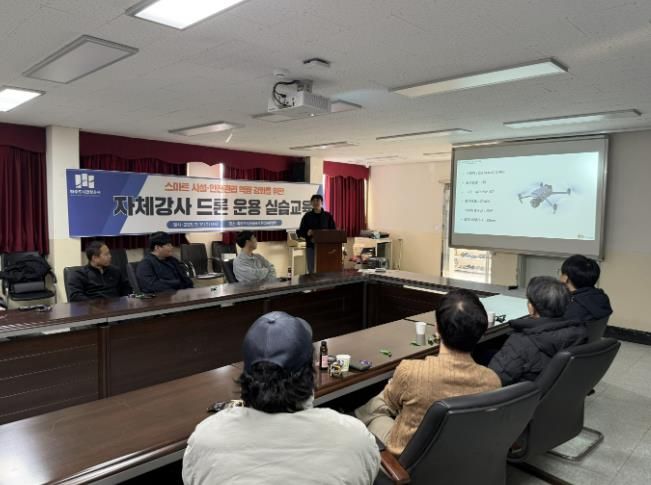 이론 교육에서는 드론 현황을 비롯해 원스톱 민원서비스를 활용한 비행 허가 절차, 기기별 특성 및 기본 구조 등에 대한 내용을 다루었고 이어서 진행된 실습 교육에서는 드론 기기 연결 방법과 기본 조종법을 중심으로 실제 현장에서 바로 활용할 수 있는 실습 위주의 교육이 이루어졌다.