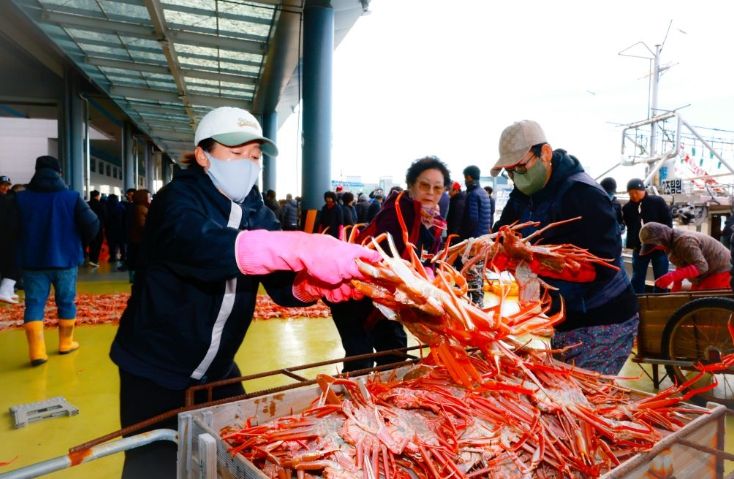 한방통신사 신유철기자 기자 | 차가운 겨울 바다의 진미 울진대게가 죽변항과 후포항을 붉게 물들인다.