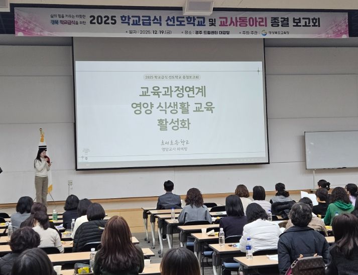 한방통신사 신유철기자 기자 | 경북교육청은 19일 경주시에 있는 교원드림센터 대강의실에서 도내 영양(교)사 230여 명이 참석한 가운데 ‘2025학교급식 선도학교 및 교사동아리 성과보고회’를 개최했다고 밝혔다.