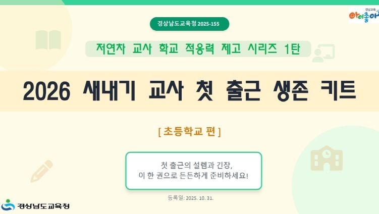 한방통신사 신유철기자 기자 | 경상남도교육청은 22일부터 도내 초등학교 신규 교사의 안정적인 학교 정착을 지원하기 위한 『2026 새내기 교사 첫 출근 생존 키트』를 도내 전 초등학교에 배포한다.