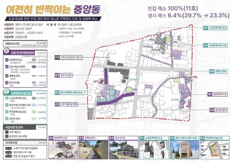 이번 사업은 빈집 문제 완화와 지역 활력 회복을 목표로, 2026년부터 4년간 총 96억 9,400만원(국비 50억원, 도비 8억 3,400만원, 시비 38억 4,600만원, 민간 1,400만원)의 예산을 투입해 노후주택 정비, 기반시설 확충, 주민편의시설 조성 등을 진행할 예정이다.