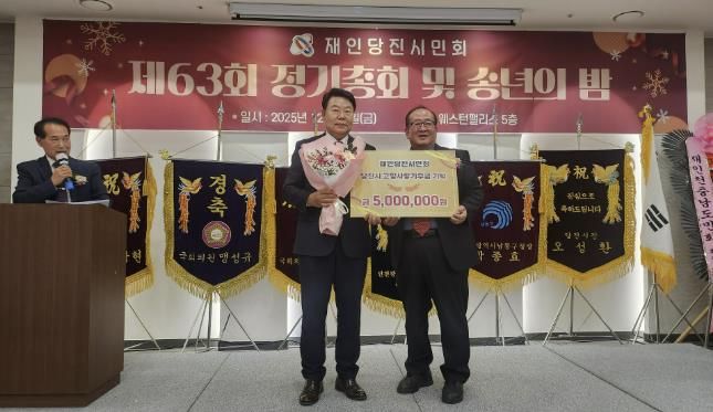 한방통신사 신태공 기자 | 당진시는 재인당진시민회가 12월 19일 인천광역시 부평구 웨스턴팰리스에서 열린 재인당진시민회 제63회 정기총회 및 송년회에서 고향사랑기부금 500만 원을 당진시에 기탁했다고 밝혔다.