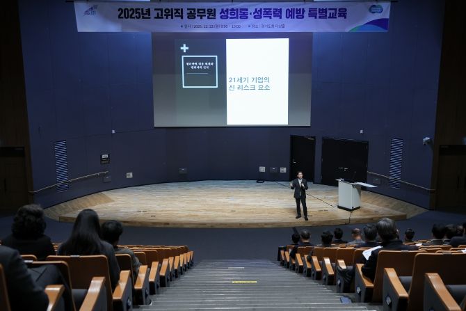 한방통신사 신유철기자 기자 | 경기도는 22일 경기도청 다산홀에서 김동연 경기도지사를 포함해 고위직 공무원 약 50명을 대상으로 ‘직장 내 성희롱·폭력 예방 특별교육’을 실시했다.