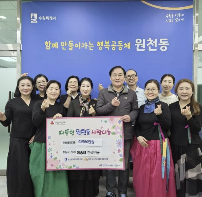 이번 성금은 한국무용반 강사와 수강생들이 자발적으로 뜻을 모아 마련한 것으로, 지역 내 어려운 이웃들에게 따뜻한 연말을 선물하고자 하는 마음이 담겼다.