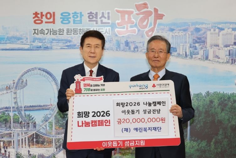 이강덕 포항시장은 “희망2026 나눔캠페인 기간 중 뜻깊은 나눔을 실천해 주신 애린복지재단에 깊이 감사드린다”며 “전달받은 성금은 도움이 절실한 이웃들에게 소중히 전달될 수 있도록 하겠다”고 말했다.