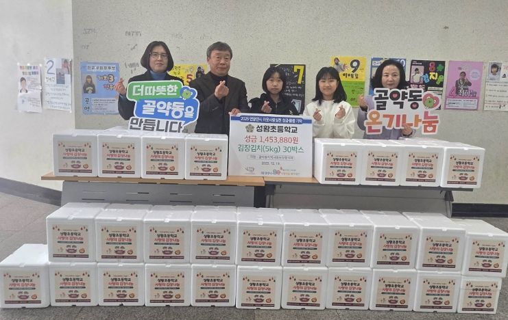 한방통신사 신다은기자 기자 | 성황초등학교가 지난 19일, 광양시 골약동지역사회보장협의체(공공위원장 박순옥, 민간위원장 정용태)에 학교 나눔 장터 수익금과 김장김치 30박스를 기탁하며 이웃사랑을 실천했다.