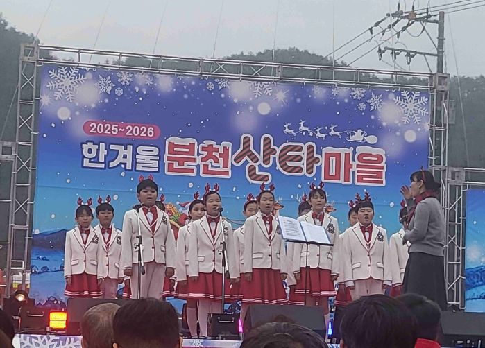 한방통신사 신유철기자 기자 | 봉화군 소천면 분천산타마을에서 지난 20일(토) 개최된 ‘2025 한겨울 분천산타마을 개장식’ 이 지역주민과 관광객들의 열띤 호응 속에 성황리에 열렸다. 이번 개장 축하공연에는 봉화교육지원청이 운영하는 봉꽃송이 청소년 합창단이 참여하여 한겨울 추위를 녹이는 따뜻한 무대를 선사했다.