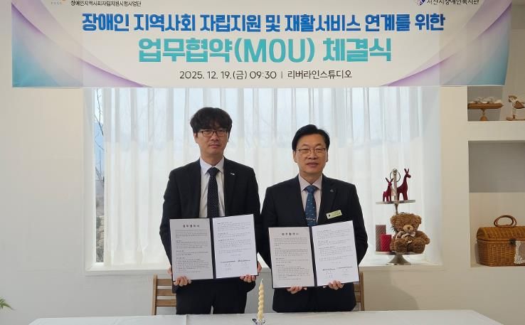 한방통신사 신태공 기자 | 서산시장애인지역사회자립지원시범사업단과 서산시장애인복지관은 2025년 12월 19일, 서산시에 거주하는 장애인의 안정적인 지역사회 정착과 복지 향상을 위해 업무협약(MOU)을 체결했다.