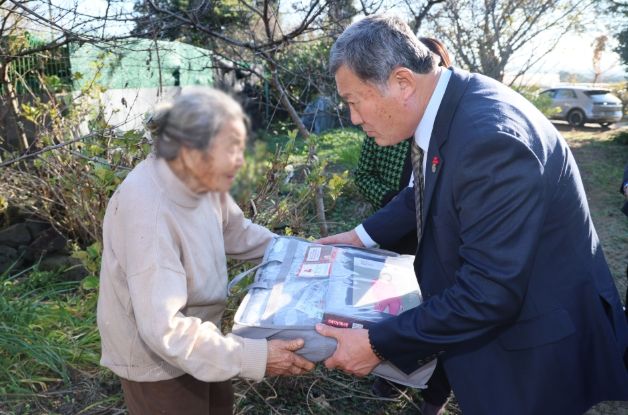 이날 김 시장은 제주도사회복지공동모금회의 후원으로 일상생활에서 사용할 수 있는 제주지역화폐 탐나는전을 전달했다. 또한 한국에너지공사가 지원한 전기매트도 함께 제공하며 홀로 사는 주거취약가구가 보다 건강하고 따뜻하게 겨울을 보낼 수 있도록 힘을 보탰다.