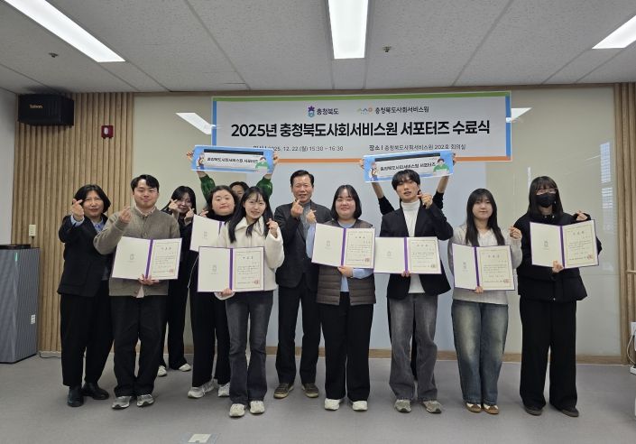 한방통신사 권영분기자 기자 | 충청북도사회서비스원(이장희 원장)은 12월 22일 오후 3시 30분, 충청북도사회서비스원 회의실에서 2025년 서포터즈 수료식을 개최했다.