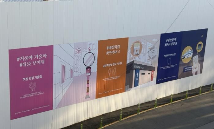 23일 안양시에 따르면, 안양시 여성안전실무협의체는 지난해 제5차 회의에서 방범시설물의 대시민 홍보 필요성이 제기에 따라, 시민들이 일상에서 자연스럽게 방범시설물을 인지하고 활용할 수 있는 방안으로 공사현장 가설울타리에 방범시설물을 안내하는 디자인 적용을 추진했다.