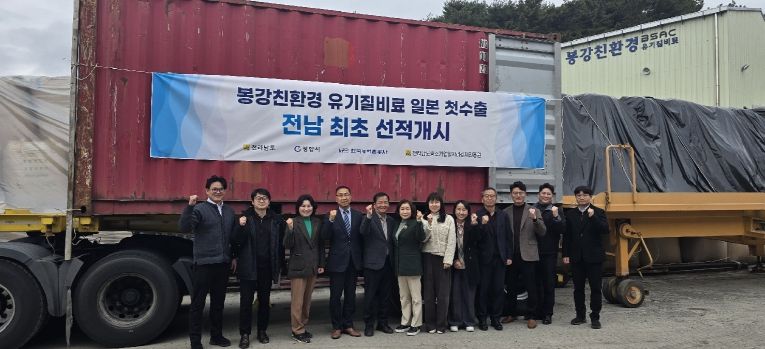 이번에 수출되는 제품은 봉강친환경영농조합법인의 주력 제품인 ‘토비타 골드’로, 초도 물량 800포(20피트 1TEU)가 광양항을 통해 일본 키타큐슈로 향한다. 해당 제품은 일본의 유력 비료 상사를 모기업으로 둔 전문 유통업체를 통해 일본 전역 매장에 판촉용으로 우선 공급되어 현지 농가에 소개될 예정이다.