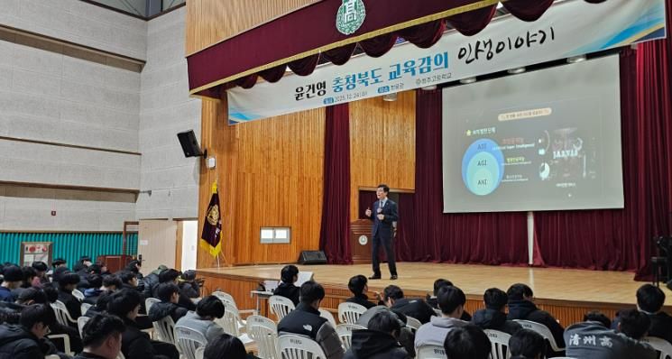 한방통신사 권영분기자 기자 | 청주고등학교은 24일, 윤건영 충청북도교육감이 청주고등학교를 방문해 학생들을 대상으로 특별 강연을 진행했다고 전했다.