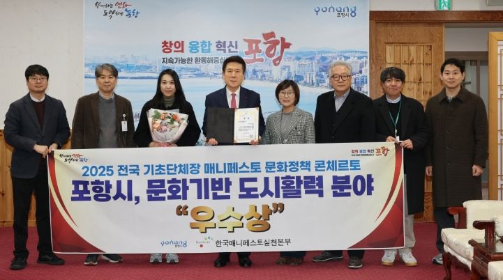 한방통신사 신유철기자 기자 | 포항시가 지난 22일부터 23일까지 양일간 상지대학교에서 열린 ‘제1회 2025 전국 기초단체장 매니페스토 문화정책 콘체르토’에서 문화기반 도시활력 분야 우수상을 수상했다.