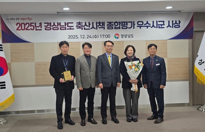 한방통신사 신유철기자 기자 | 진주시는 지난 24일, 경상남도가 지난 11월 도내 18개 시군을 대상으로 시행한‘2025년 경상남도 축산시책 시군 종합평가’에서 장려상을 수상했다고 밝혔다.