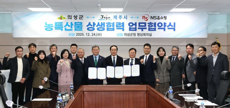 한방통신사 신유철기자 기자 | 의성군은 지난 24일 제주시 및 ㈜NS쇼핑(대표이사 조항목)과 우수 농특산물 유통 확대와 판로 다각화를 위한 상생협력 업무협약을 체결했다고 밝혔다.