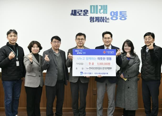 한방통신사 신유철기자 기자 | 수원시 영통구는 지난 24일 한국자산관리공사 경기지역본부에서 관내 경제적으로 어려움을 겪는 이웃을 위해 성금 500만 원을 기부했다고 밝혔다.