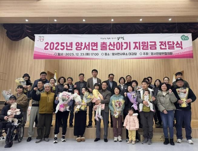 양서면의 출산아기 지원금은 출산 가정에 실질적인 도움을 제공하고, 아이 낳고 키우기 좋은 지역사회 조성을 위한 양서면의 지속적인 출산·양육 지원 정책의 일환이다. 면은 앞으로도 관련 지원을 지속적으로 이어갈 계획이다.