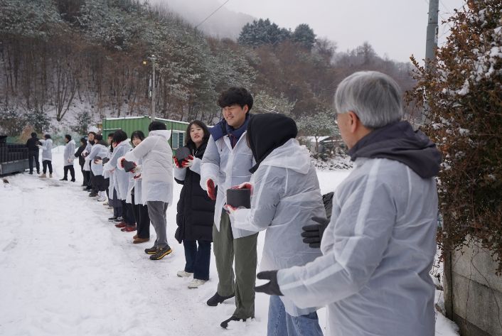 이번 봉사활동에는 진흥원 임직원 43명이 참여해 연탄 릴레이 봉사를 펼쳤으며, 총 300만 원 상당의 연탄을 기부해 겨울철 난방에 어려움을 겪는 농가의 부담을 덜었다.