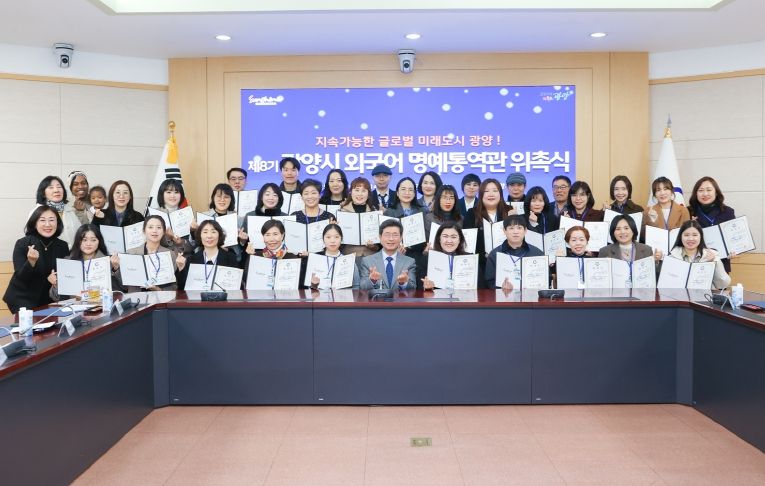 시 관계자는 “외국어 명예통역관은 광양이 세계와 소통하는 국제교류 현장의 핵심 인적자원”이라며 “민간 외교관으로서 글로벌 국제도시 광양의 위상을 높이는 데 큰 역할을 할 것으로 기대한다”고 말했다.
