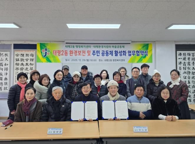 김상균 동장은 “이번 협약이 지속가능한 환경보전과 더불어 지역 주민이 주도하는 공동체 활성화의 토대가 될 것”이라며, “더 깨끗하고 주민 모두가 행복한 태평2동을 만들기 위해 단체와 적극적으로 소통하겠다”라고 말했다.