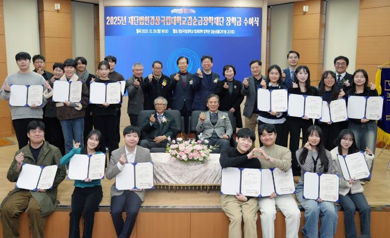 한방통신사 신유철기자 기자 | ‘재단법인 경상국립대학교 김순금 장학재단’은 12월 29일 오후 4시 법과대학 ‘김순금홀’에서 2025년 장학금 수여식을 개최했다.
