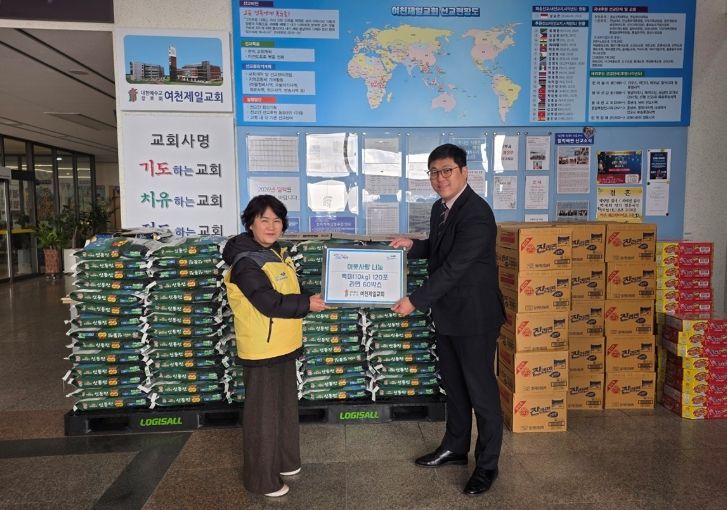 안순금 여천동장은 “매년 지역사회를 위해 따뜻한 나눔을 실천해주시는 여천제일교회 목사님과 교인들께 깊이 감사드린다”며 “전달해주신 물품은 도움이 필요한 이웃들에게 정성껏 전달하겠다”고 말했다.