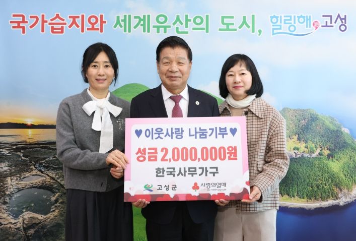 한방통신사 신유철기자 기자 | 고성군 대독리 소재 한국사무가구 김현주 부사장은 1월 6일, 고성군청을 방문하여 관내 어려운 이웃을 위해 써 달라며 이웃돕기성금 200만 원을 전달했다.