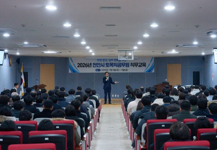 한방통신사 신태공 기자 | 천안시는 지난 8일부터 9일까지 이틀간 토목직 공무원 140여 명을 대상으로 ‘2026년 토목직 공무원 직무교육’을 실시했다.