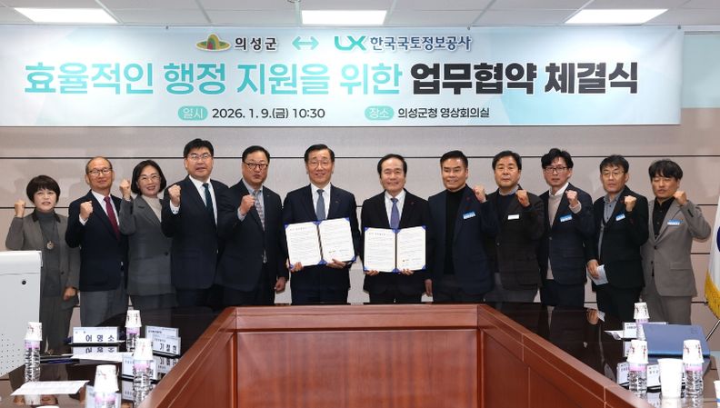 주요 협약 내용은 ▲공유재산의 체계적인 관리 및 효율적 활용을 위한 이용·분석 협력 ▲국토이용정보체계 고도화를 위한 연속지적·주제도 정비 및 품질관리 협력 ▲군민의 안전을 위한 의성형 스마트 재난안전관리 플랫폼 구축 지원 협력 등이다.