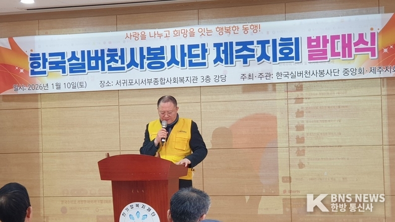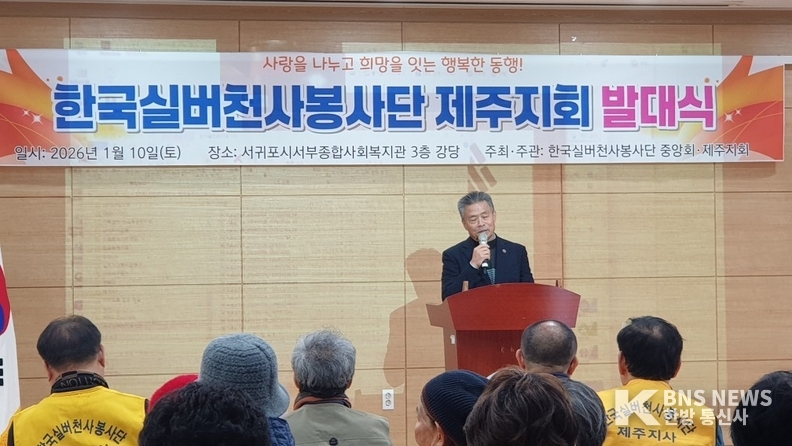 지난 2026년 1월 10일 (토) 오전 11시 서귀포시서부종합사회복지관 대강당에서 한국실버천사봉사단 제주지부 발대식이 모슬포 주민 85여명과 각지부장 15명을 포함해 100여명이 참여했다.