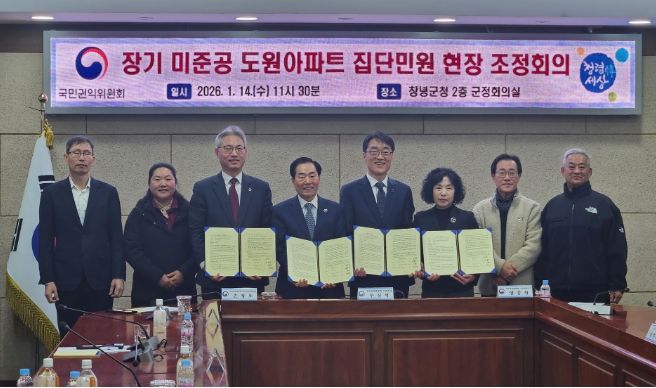 한방통신사 신유철기자 기자 | 경상남도는 14일 오전 11시 창녕군청에서 열린 국민권익위원회 공동주택 집단민원 현장조정회의에서 장기 미준공 공동주택 문제해결을 위한 조정 절차에 참여했다고 밝혔다.