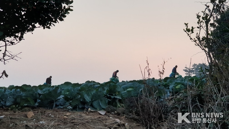 - 저녁 노을에 밭에서 일하는 농부의 모습