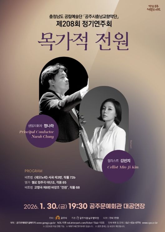 한방통신사 신태공 기자 | 충청남도 공립예술단 공주시충남교향악단은 오는 1월 30일19시 30분, 공주문예회관 대공연장에서 ‘목가적 전원’을 부제로 2026년 시즌의 첫 정기공연의 문을 연다.