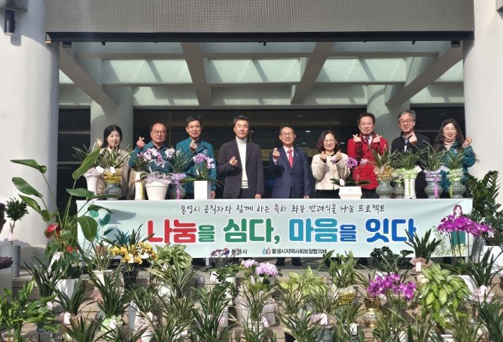 한방통신사 신유철기자 기자 | 통영시지역사회보장협의체(공공위원장 천영기, 민간위원장 배은영)는 지난 15일 공직자들이 받은 축하 화분을 지역사회 취약계층과 나누는 '통영시 공직자와 함께하는 축하화분 나눔 프로젝트 ‘나눔을 심다, 마음을 잇다’'행사를 진행했다.