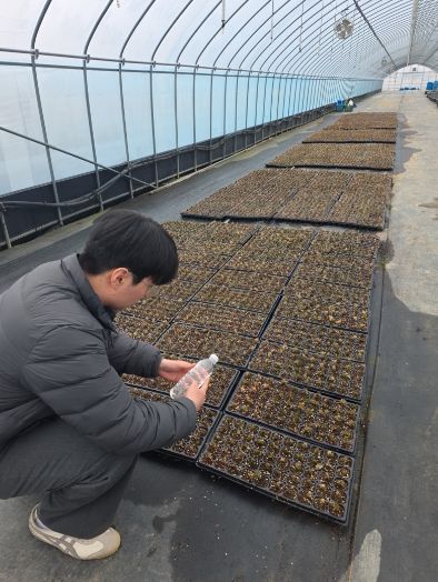 한방통신사 신태공 기자 | 금산군농업기술센터는 올해 금산천 데크길 꽃잔디 식재를 위한 우수 육묘 생산에 총력 대응하고 있다.