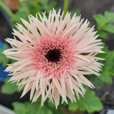 거베라 ‘핑키시스파이(Pinksh Spy)’는 연분홍색 스파이더형 화형으로 연간 주당 채화 수량이 124개로 많고, 생육이 왕성한 것이 특징이다.