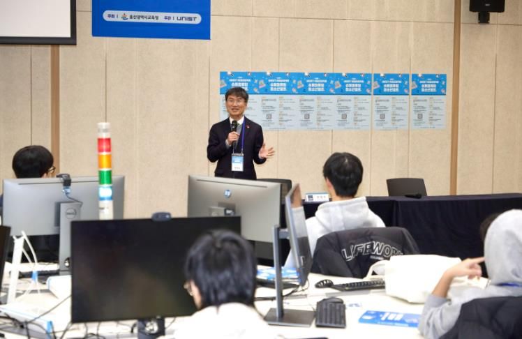 유니스트 러닝커먼즈에서 열린 이번 캠프에는 울산 지역 고등학생 90명으로 구성된 30개 팀이 참여했으며, 이론 교육과 실습, 팀 과제를 결합한 집중형 프로그램으로 운영된다.