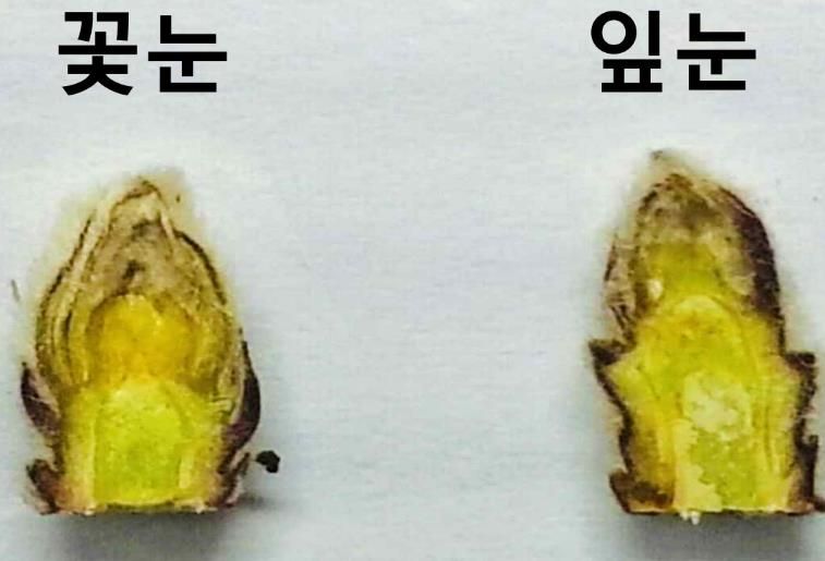 꽃눈 분화율은 나무가 잎과 가지를 키우는 영양생장에서 꽃과 열매를 맺는 생식생장 단계로 전환되는 정도를 나타내는 지표로, 가지치기 정도를 결정하는 데 중요한 기준이 된다.