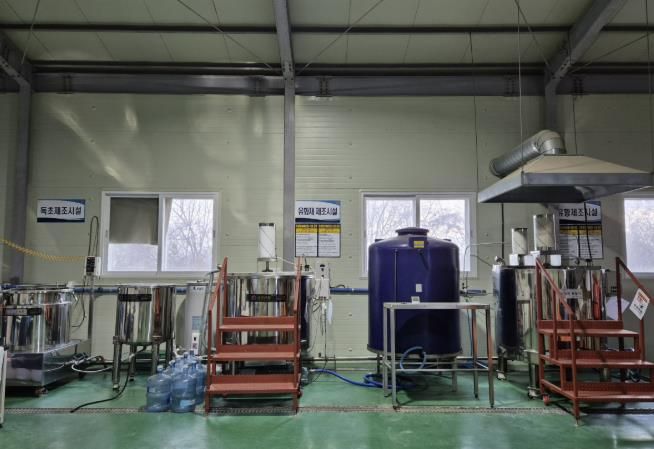 무상 공급량을 초과해 추가 자재가 필요한 경우에는 제조시설을 활용해 농업인이 직접 유기농자재를 생산할 수 있으며, 시설 이용은 사전 신청 후 가능하고 제조 기간은 유황과 독초는 2일, 유화제는 7일이 각각 소요된다.