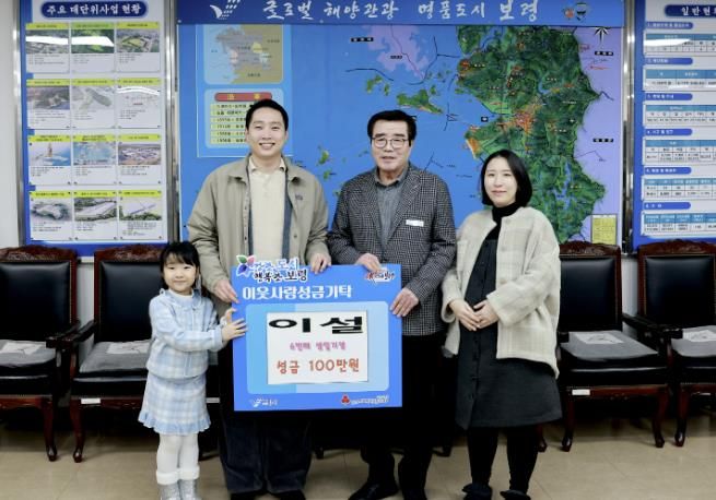 한방통신사 신태공 기자 | 보령시는 지난 20일 시장실에서 이지원 씨와 배우자 고가슬 씨, 그리고 딸 이설 양이 참석한 가운데 ‘희망 나눔 캠페인’ 성금 전달식을 가졌다. 이날 이 씨 가족은 이설 양의 생일을 기념해 정성껏 마련한 성금 100만 원을 보령시에 기탁했다.