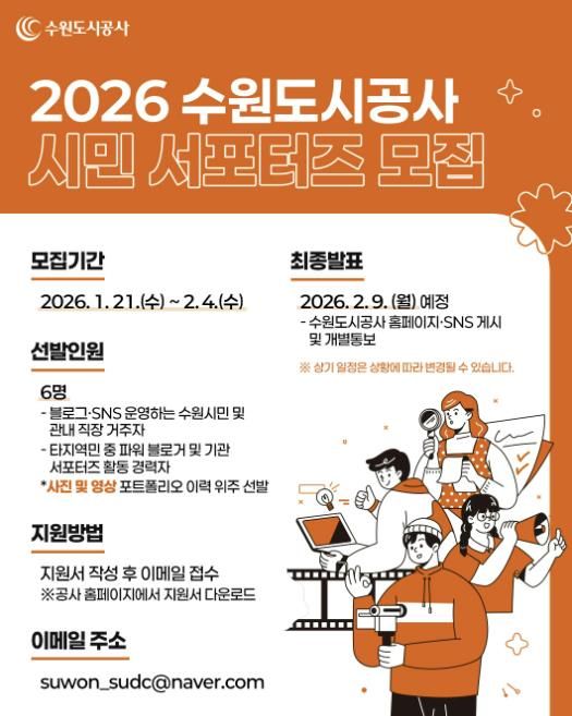 한방통신사 신유철기자 기자 | 수원도시공사가 21일부터 다음 달 4일까지 2026년도 제8기 시민 서포터즈를 모집한다.