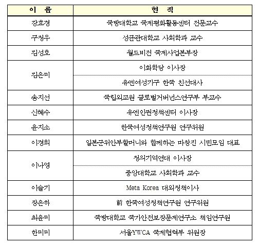 한방통신사 신유철기자 기자 | '여성과 함께하는 평화 구상(Action with Women and Peace Initiative)' 2기 자문위원회가 1월 21일 출범했다. 금번에 출범한 2기 자문위원회는 여성‧평화‧안보, 인권, 개발협력, 사이버 등 분야에서 활동 중인 13명의 학계, 시민사회 등 민간 전문가로 구성되어 앞으로 동 구상 추진 과정에서 다양한 자문을 제공하게 된다.